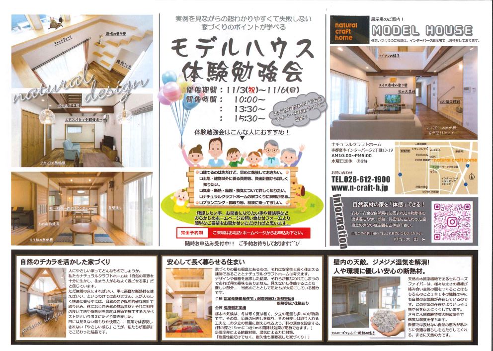 「モデルハウス体験勉強会」11月3日(木祝)~6日(日) 開催‼
